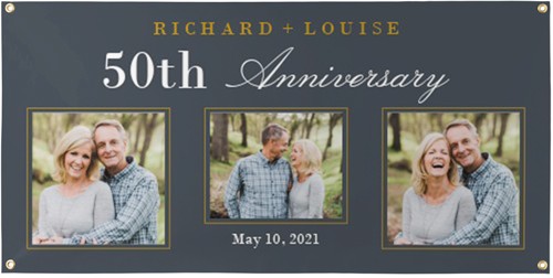 Use this vinyl banner to share news with your neighbors, from celebrating a graduate, a wedding or sports team to spreading the news about an event. Personalize on one side with your choice of horizontal or vertical designs, and hang using the four gold grommets at the corners. No hanging accessories included.