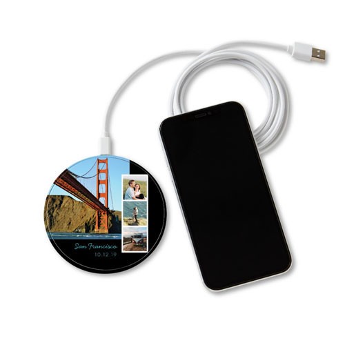 Charging your phone is easy with our personalized wireless phone charger.  Simply place your phone at the center of the pad and start charging instantly. The wireless phone charger’s convenient size makes it the perfect tech staple to charge your phone at your desk, nightstand or on your travels.