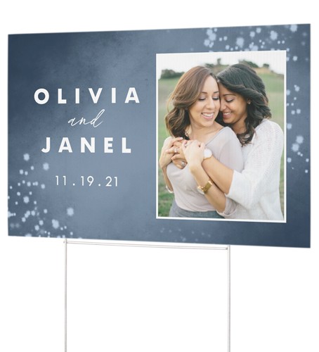 Celebrate what you love with this personalized corrugated yard sign, which is great for honoring your grad, announcements, weddings, parties and more. Double-sided printing makes your sign easy to spot from either direction. Set up quickly and easily with an aluminum H" step stake that's easy to insert into the ground and securely holds the sign in place."