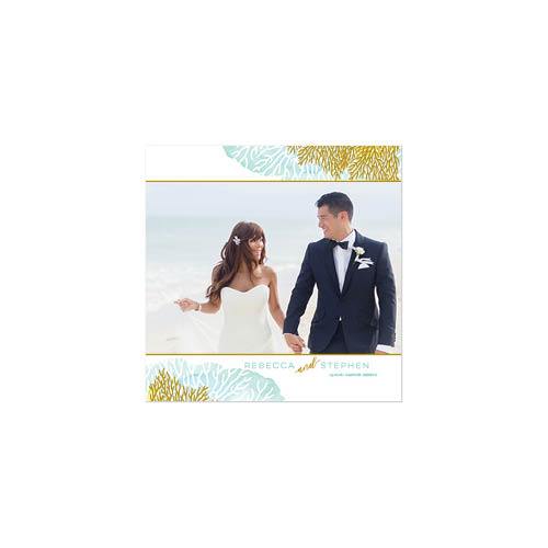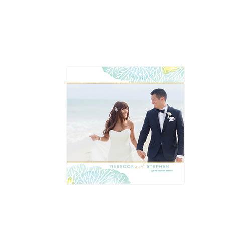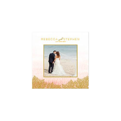 There's just something about a beach wedding. Capture the elegant simplicity and natural beauty of your big day with this modern yet sweet photo book. The clean, understated pages combine pale watercolor backgrounds and simple gold borders with delicate illustrations of corals, sand dollars, sea stars and shells. This premium style was designed by Float Paperie.